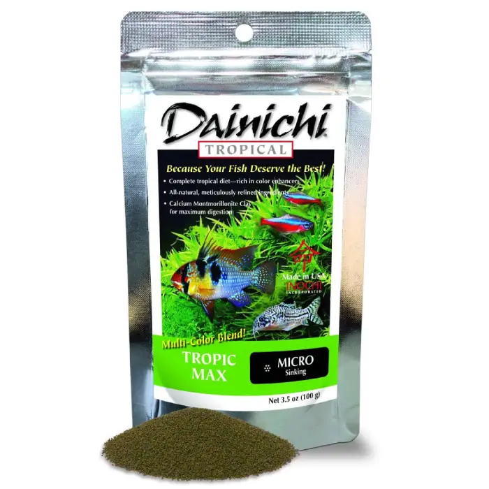 Dainichi Tropic Max 100g is a high‑energy tropical fish food made from easily digestible marine and vegetable proteins like Antarctic krill and white fish meal. With added kelp, spirulina, pea protein and colour enhancers in red and green micro granules, Dainichi Tropic Max 100g supports vibrant colours, strong growth and overall health in a wide range of tropical fish.