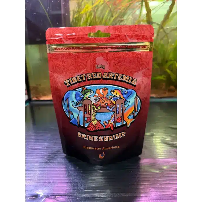 Tibetian red eggs are a brine shrimp egg sourced from lake Namtso, this salt lake is the largest salt lake in Tibet. The eggs and the brine shrimp hatched from these eggs are about 2-3 times bigger than standard eggs. This makes the eggs an absolute favourite of mine seeing that even larger fish are going absolutely crazy for it.